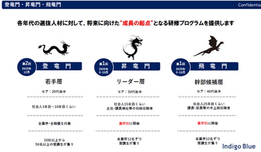 2025年度の「登竜門」「昇竜門」「飛竜門」は、各パートナー企業様との協業の元、人材育成コンサルティングファームIndigo Blueが主催します。パートナー企業様