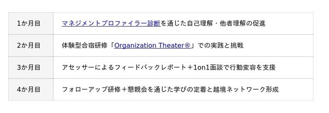 受講者は、合宿形式でのケーススタディやグループワークを通じて、実務の枠を越えたリーダーシップを体得。さらに世代・業界を越えた“安心して弱さを出せる関係性”の中で、内省と実践を往復することにより、次のステージへの「成長の起点」を築きます。