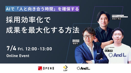 LUF株式会社は、2025年7月4日(金)に開催されるオンラインセミナー「AIで"人と向き合う時間”を確保する ―採用効率化で成果を最大化する方法―」に登壇することをお知らせいたします。