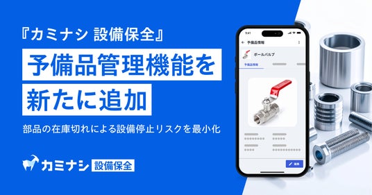 株式会社カミナシ(本社:東京都千代田区、代表取締役CEO:諸岡 裕人、以下「カミナシ」)は、設備の保全業務をデジタル化するクラウドサービス『カミナシ 設備保全』において、予備品(部品)の在庫記録・修理作業記録を一元化できる機能の提供を開始したことをお知らせします。在庫管理からデータ活用までを一つのシステム上でまとめることで、保全業務全体の効率化と生産ラインとの安定稼働を支援します。