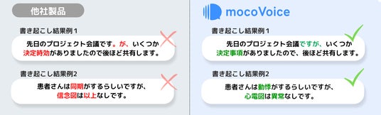 「mocoVoice」は、企業から寄せられた現場の声に応える形で誕生した、高品質なAI音声認識サービスです。議事録作成も話者分離もこれひとつで対応可能です。