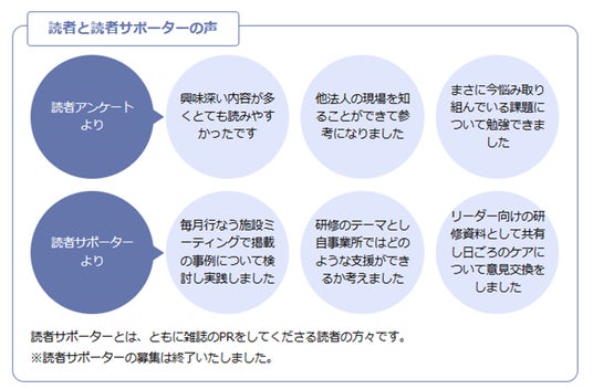 本誌は毎号変わる特集テーマと、幅広い分野の連載記事により、福祉の現場へ最新の情報をお届けしております。現場で働くすべての皆様を元気づけられる雑誌、専門性を高める情報マガジンを目指しています!