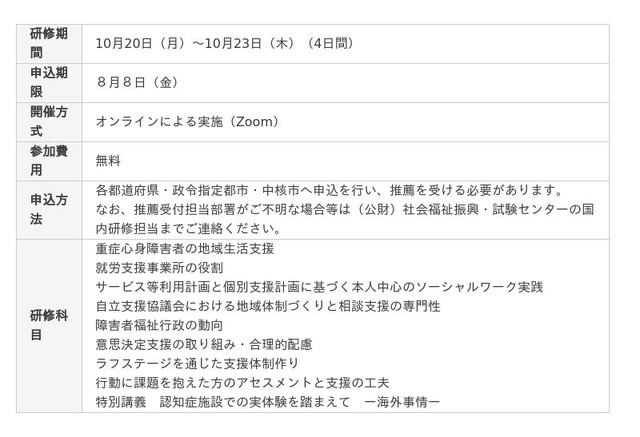 10月開催社会福祉施設・事業所職員向け国内研修開催のご案内