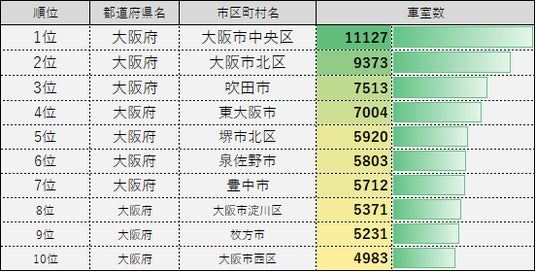 ■ 大阪府 市区町村別 車室数ランキング TOP10