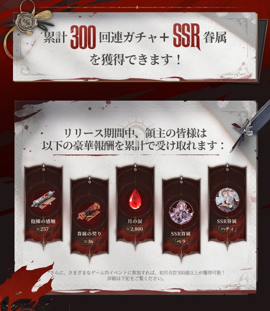 リリース記念として、最大300連以上ガチャ+SSR眷属を手に入れるチャンス!