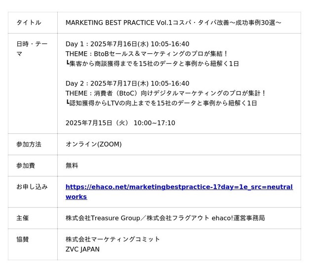 お申し込みURL:https://ehaco.net/marketingbestpractice-1?day=1e_src=neutralworks