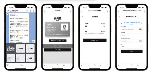 ユーザーはLINEアプリを通じて、そのまま施設の空き状況確認から予約、決済までをシームレスに実行可能。