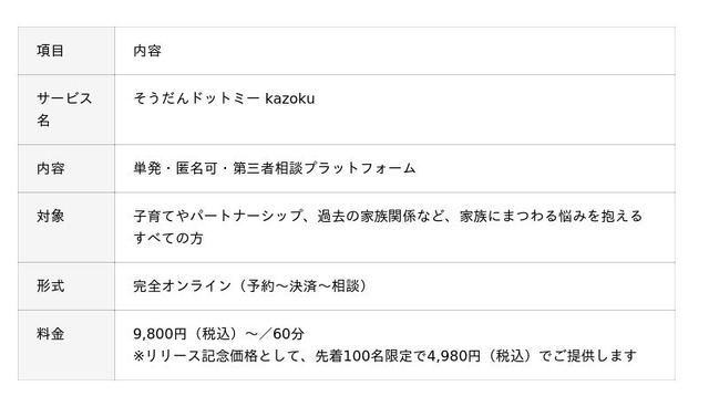 『そうだんドットミー kazoku(カゾク)』サービス概要