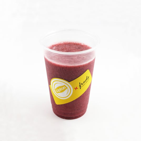 冷凍のストロベリー・ブルーベリー・ラズベリーと紅茶を混ぜ合わせたスムージーです。紅茶はコールドブリューのアールグレイを使用しており、一口飲めば、甘酸っぱいベリーと爽やかな風味が口いっぱいに広がります。ひんやり冷たい、暑い夏にぴったりのドリンクです。