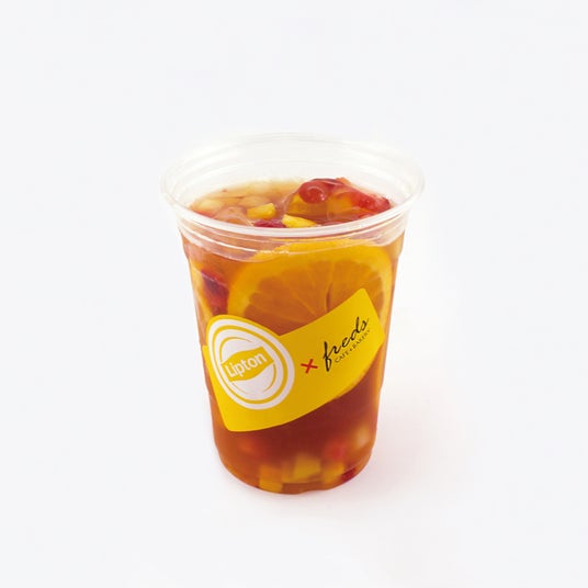 ピーチティーに、氷の代わりに冷凍のマンゴーチャンクとホワイトピーチをたっぷり入れました。ゴロっと入った果肉のみずみずしい味わいと、ピーチティーの甘く芳醇な香りが暑さをクールダウンさせる、贅沢な一杯です。