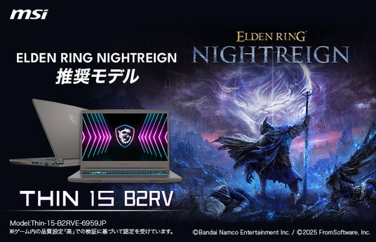 この度、エムエスアイコンピュータージャパン株式会社は、株式会社フロム・ソフトウェアが販売する協力型サバイバルアクション「ELDEN RING NIGHTREIGN」の推奨モデルとして、「Thin-15-B2RVE-6959JP」が認定されたことを発表いたします。