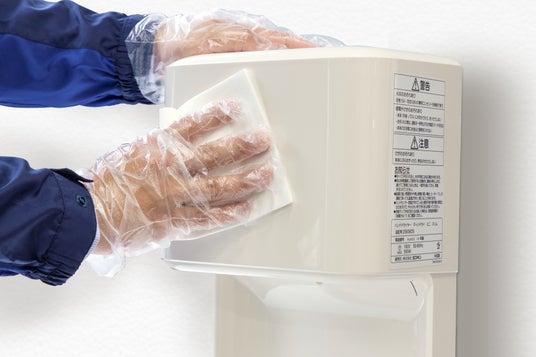4週間に1回のレンタルの際に、ダスキンの担当者が本体のメンテナンスを実施し、ハンドドライヤー本体もすっきりキレイにします。本体の外側、手の口、水受けトレイを防汚効果のある洗剤を使用して清掃をするので、対象面に付いた汚れを落としやすい状態にします。そのため、日々の清掃もラクになります。作業完了後には、実施・確認証にてお客様へご報告します。