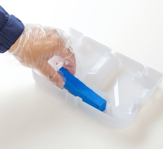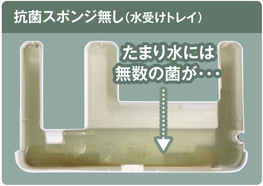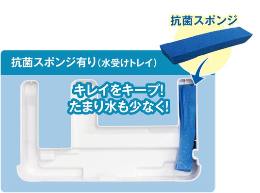 ● 抗菌スポンジで水受けトレイ内の衛生をキープスポンジに含浸させた抗菌剤※が、ハンドドライヤー水受けトレイに溜まった水の菌の繁殖を抑制します。4週間に1回交換することで常にキレイな状態を維持します。