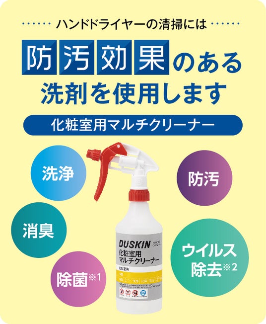 ハンドドライヤーは、ペーパータオルと比べゴミがでない上に補充の手間がないということから、商業施設や学校、オフィスビルなど多くの事業所で活用されています。しかし、コロナ禍を経て、共用設備に対する衛生意識の高まりもあり、ハンドドライヤーの衛生状態を気にされる利用者は少なくありません。利用者の安心感や施設に対する評価にかかわる衛生環境の維持には、水受けトレイに溜まった汚れた水の適切な処理や、本体の定期的な清掃は欠かせないものの、清掃スタッフの大きな負担となります。こうした背景を受け、これまで弊社でレンタル・販売するハンドドライヤーに標準採用していた抗菌スポンジ※を、他社製のハンドドライヤーでも使用できるようレンタルサービスとして提供を開始します。水受けトレイ内に抗菌スポンジ※を交換・セットすることでニオイや汚れの元となる細菌の増殖を抑制※します。さらに、定期訪問の際にはダスキンの担当者が防汚効果のある洗剤でハンドドライヤー外面を清掃するため、汚れがつきにくく落としやすくなり、日々の清掃スタッフの作業負担も軽減されます。この『ハンドドライヤー用抗菌スポンジ』とダスキンの担当者による”定期的な簡易メンテナンス”によりハンドドライヤーの衛生的な環境維持をサポートします。