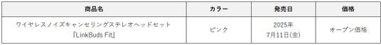LinkBudsシリーズの環境配慮の取り組みとしては、今回の新色に限らず全機種で、本体とケースの一部に工場回収の樹脂を活用した再生プラスチックを使用しています※4。新色「ピンク」では、製品に使用されているプラスチックの約20%が再生プラスチックで構成されています※5。個装パッケージ※6にはプラスチックを使用していません。