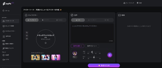 JoyPix.AIによる会話アバター動画の生成サービス画面