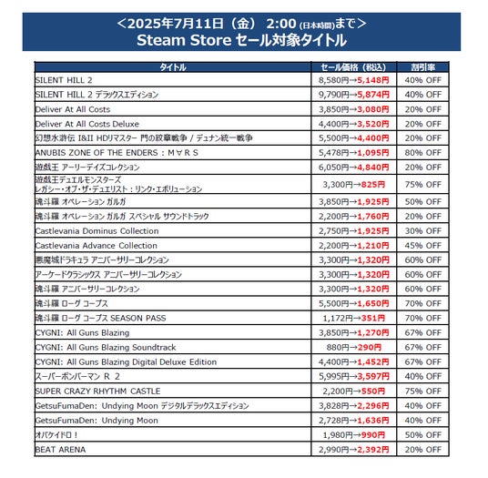 セール対象タイトルの詳細: https://konami.jp/4kNzYgB