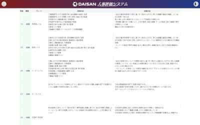 本WEBシステムは、お客様へのご提案を前提に製作しております。システムの導入により、評価業務の時間や手間を削減できる他、透明性が高く公平感のある評価基準の設定により従業員満足度向上への効果も期待できます。詳細について、ご関心をお持ちの企業様はお気軽にお問合せください。