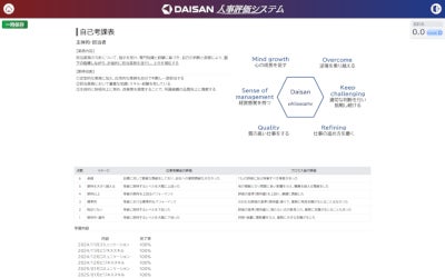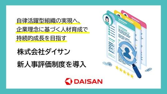 株式会社ダイサン(代表取締役社長:藤田武敏)は、2025年5月より新たな人事評価制度を導入いたしました。本制度は、当社で製作したWEBシステムにより運用いたします。新制度の導入により、当社バリュー「DAISAN SIX VALUE」や行動指針「ダイサンフィロソフィー」をはじめとする企業理念の浸透および中期経営計画に基づく「自律活躍型の組織づくり」を推進し、従業員の成長と組織の発展を両立させ持続的な企業価値向上を目指してまいります。