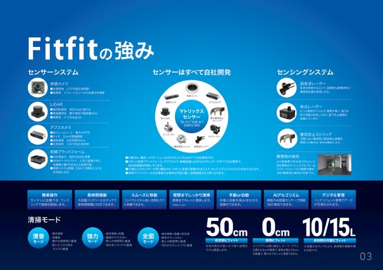 業務用清掃ロボット『Fitfit』は、高性能な清掃システムと先進のAI技術を搭載しております。
