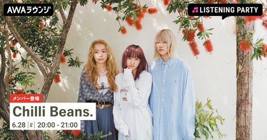 AWA株式会社(本社:東京都港区、代表取締役CEO:冨樫晃己)が運営する、サブスクリプション型(定額制)音楽ストリーミングサービス「AWA(アワ)」は、2025年6月28日(土) 20:00~21:00にて、無料で誰でも参加できるオンライン空間「ラウンジ」で、「Chilli Beans.」のメンバーが音声とチャットで登場するリスニングパーティーを開催いたします。