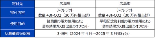 本商品は、私募債発行額の0.20%以内で、当行がカーボンクレジットを購入し、広島県が所管する文化・芸術施設や、広島市が所管する平和関連施設等で排出された温室効果ガスに対して、オフセットを行うものです。