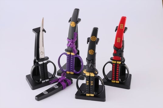 日本の歴史を彩る名将たちの刀をモチーフにした、日本刀型はさみ。刀の柄がハサミの持ち手となっており、刀身は精密に作られた実用刃。