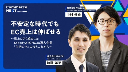 - 「不安定な時代でもEC売上は伸ばせる~売上120%増加したShopifyとKOMOJU導入企業『生活の木』の今とこれから~」