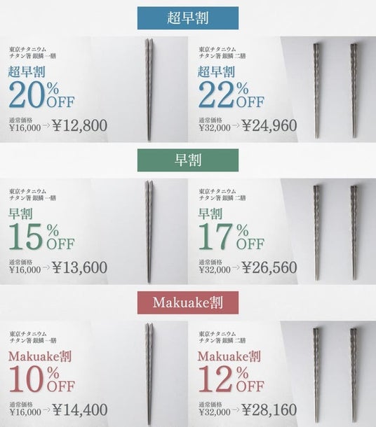 株式会社東京チタニウム(本社:埼玉県さいたま市/代表取締役:小澤 良太)は、チタン製の食事箸の開発と普及を目指し、クラウドファンディングによる資金調達を開始します。このプロジェクトは、2025年6月26~2025年9月22日までの期間限定で、応援購入サービスmakuake(URL: https://www.makuake.com/project/tokyo-titanium/ )にて実施されます。