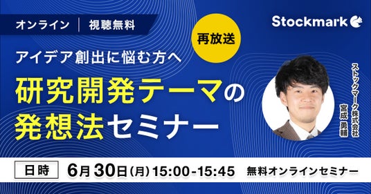 最先端の自然言語処理AIを活用した情報収集サービス『Anews・Astrategy』を提供するストックマーク株式会社(以下、「当社」)はオンラインセミナー『アイデア創出に悩む方へ 研究開発テーマの発想法セミナー』を6月30日(月) に開催致します。