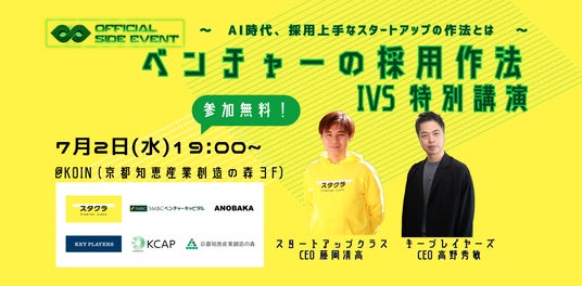 株式会社スタートアップクラス(本社:東京都目黒区/代表取締役社長:藤岡清高)は、2025年7月2日(水)~ 4日(金)の3日間、京都市のみやこめっせをメイン会場として開催される「IVS2025」の展示交流スペース「IVS Startup Markett」に出展いたします。スタクラは、2日目の7月3日(木)の出展となります。
