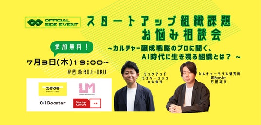 Day2の7/3(木)19:00からは、スタートアップCxO限定でお届けする、スタートアップのカルチャー醸成をテーマに、リンクアンドモチベーション白木様、Startup Culture Lab石田様をお招きし、パネルディスカッション + 懇親会を実施いたします。