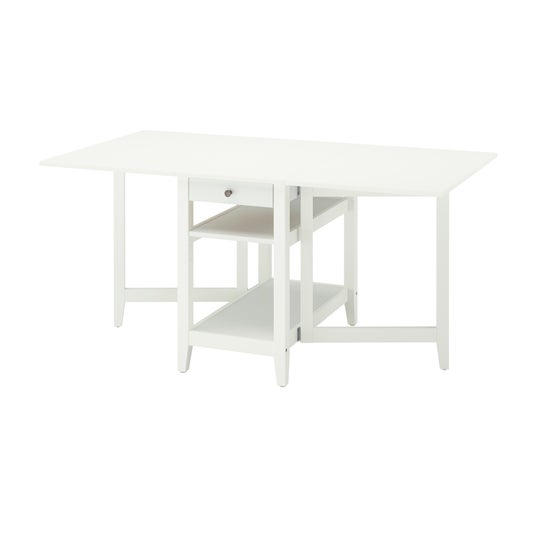 特徴は洗練されたディール。脚と天板の縁の面取り加工が鋭い角を和らげ、上品さとクラシックな雰囲気をプラスします。必要に応じてテーブルのサイズを2~4人用に変えられるので限られたスペースに最適です。テーブル下の中央部は引き出しとオープン収納になっています。引き出しにはカトラリー、オープン収納は紙ナプキンやタブレットなど、さまざまなアクティビティに必要なものを、必要なときにさっと取り出せるように保管できます。別売りのボックスなどにまとめて収納すれば細々したものを隠して収納できます。