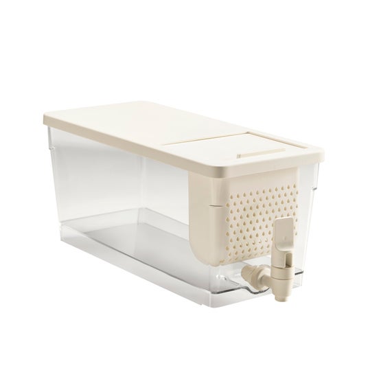 いつでもすぐに冷たい飲み物を楽しみたい人にぴったりなドリンクサーバーです。お気に入りのドリンクや水、ジュース、お茶、コーヒーを上部のふたから簡単に入れられます。フィルター付きなので、蛇口が詰まらず、お手入れが簡単です。フィルターの中にレモンの輪切りなどを入れてデトックスウォーターなどにもできます。ほとんどの冷蔵庫に入るコンパクトサイズ。この容器は底が蛇口に向かって斜めになっているので、最後の一滴まで楽しめます。