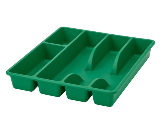 ワンコイン以下のグリーンが鮮やかなカトラリートレイです。キッチンの引き出しの中だけでなく、デスクや小物などの整理整頓に役立ちます。カトラリーならこのトレイのままテーブルに出してもコーディネートとして楽しめます。