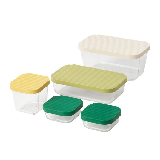 軽食、サラダ、小皿料理、または残り物の収納に最適な保存容器です。 異なるサイズがそろっていて耐久性があるので、いろんな場面で活用できます。透明なので、中身をすぐに見分けられます。お手入れの簡単なガラス製で、匂いが付きにくく、色移りもしません。保存容器を上に重ねられるので、食器棚や冷蔵庫内の整理にも役立ちます。