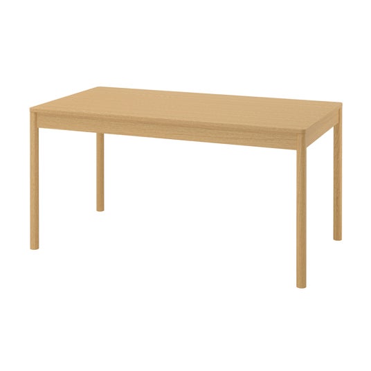 このテーブルは、ブラッシュ仕上げのマットなオーク材突き板と滑らかな丸みを帯びたコーナーが特徴です。日々の暮らしの中でお気に入りの場所になるようにつくられています。頑丈な木製の脚と本物の木材突き板の表面からなる安定感のある構造です。ステインとラッカーを複数回重ね塗りしてあり、傷や摩耗に強くなっています。