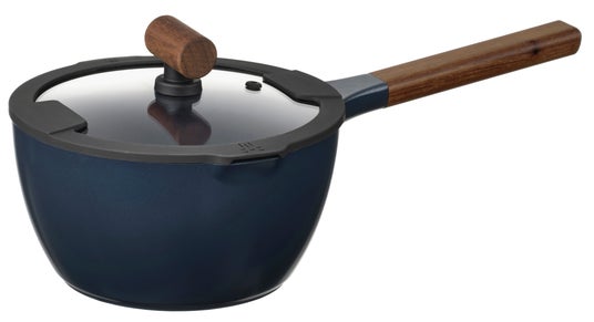 この片手鍋は、2つの注ぎ口が付いているため、右利きの人も左利きの人も快適に使えます。調理中でも様子が分かるガラス製のふたには、静かに閉まるシリコーン製の縁と便利なパッド、2つの異なるストレーナーが備わっています。PFASフリーのゾルゲン法によるセラミックコーティングが、食材が焦げつきにくく、こびりつきにくい特長を持っています。手になじむ木製の柄や持ち手、つまみは、鍋を持ち上げやすくし、ふたを扱いやすくします。モダンなブラックブルーのデザインが、そのままテーブルに出してもおしゃれな食卓を演出します。