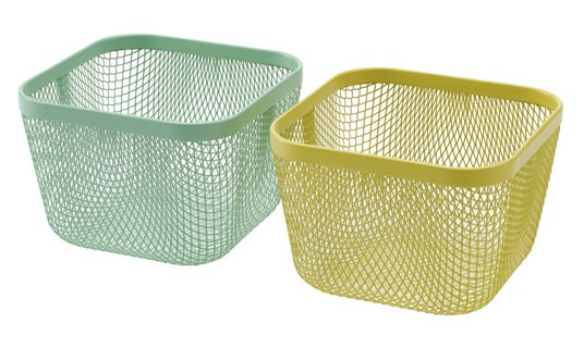 フルーツや野菜など常温で風通しのよい場所に保存するとおいしさや鮮度が長持ちする食材はたくさんあります。 IKEA 365+ 食品保存バスケットは、見た目がおしゃれで、しかも実用的。メッシュ構造のため、中に入っているものをつねに把握できるので食品ロス削減につながります。ボトル、容器、缶など、キッチンにある小物類を整理するためにも使えます。別売りのIKEA 365+ ふた(竹)とぴったり合い、ふたを付けたときも、付けないときも積み重ねられるので、スペースを節約できます。