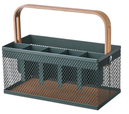 カトラリーなどの食事用品をすぐ手の届く場所に収納して、引き出し内のスペースを空けられます。大きい収納スペースが1つ、小さい収納スペースが5つあるので、お気に入りのテーブルセッティング用品が全部入ります。ホルダーは竹製の持ち手付きで、持ち運びが簡単です。すっきりとしたデザインなので、ダイニングテーブルの上に置いたままにしてもおしゃれです。デスク周りでの使用もオススメです。