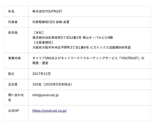 採用企業様向けページ:https://lp.youtrust.jp/recruiter