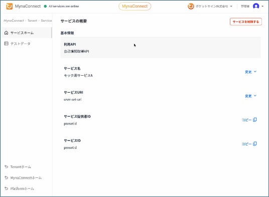 - 公式のテスト環境では、利用期間やテストデータ数に制限がある