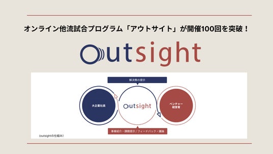 outsightは大企業人材が、ベンチャー企業の経営や事業に関する課題について学び、議論し、解決策を提案する実践型のオンライン研修です。オンラインだから叶う「一歩目の越境」として、「社外」に目を向け、他流試合を通して新たな視点を獲得する機会を提供しています。