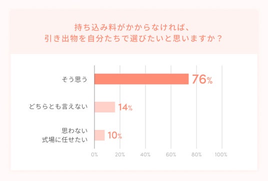 ■持ち込み料がかからなければ、引き出物を自分たちで選びたいと思いますか?に対しては76%の新郎新婦がそう思うと回答