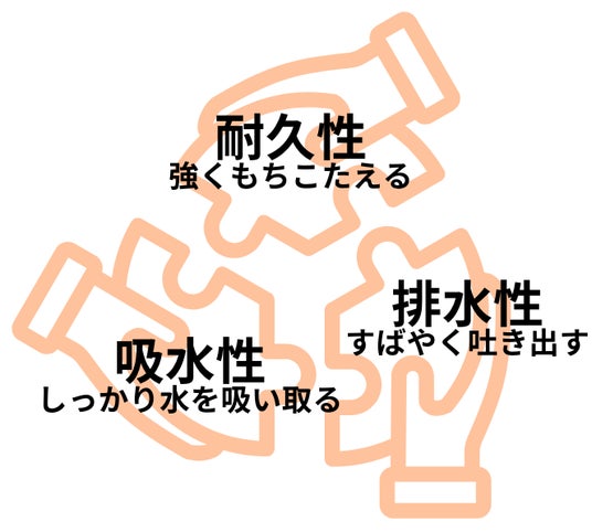 さらにイッセ・スノーソックスは、「耐久性・吸水性・排水性」の3つの性能をバランスよく備えた布製タイヤチェーンです。