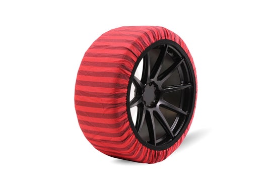 従来のスーパーモデルと同様に、イッセ独自の特許取得済みの織り構造を採用。1枚の布の中で異なる織り方を組み合わせることで、車両への高いフィット感と路面をしっかり捉えるグリップ力を両立しています。サイズの狭間でスノーソックスを諦めていたドライバーの皆さまにも快適で安心な走行性能を体感いただけます。