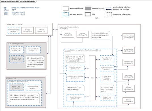 また、ネットワーク接続する医療機器は、接続先のモバイル機器や、クラウドサービスとどのように連携して医療機器としての機能を提供するのかをシステム及びソフトウェアアーキテクチャ図にてFDAに示す必要があります。