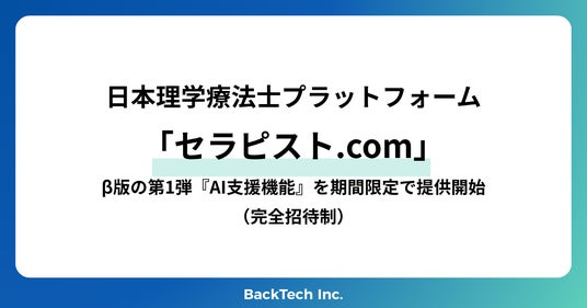 株式会社バックテック(代表取締役 CEO/理学療法士:福谷直人、以下「バックテック」)は日本理学療法士プラットフォーム 「セラピスト.com」 の一部機能をβ版として公開し、その第一弾として AI支援機能 を2025年6月26日(木)より完全招待制でリリースいたします(7月25日まで公開予定)。