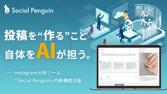 また、従来のSNS支援ツールが行っていたのは、投稿後のパフォーマンス分析やDMの自動返信など、運用効率化が主。Social Penguinに追加された新機能では、運用の根幹である、”投稿を作ること”をAIがサポートします。
