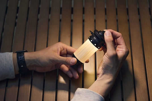 本製品は、手のひらサイズのコンパクト設計ながら、「吊る」「置く」「持ち歩く」といった使い方ができる、ミニマルなLEDランタンです。最大240lmの明るさに加え、無段階調光でシーンに合わせた光の調整が可能。シェードには独自のウェーブ形状を採用し、眩しさを抑えたやわらかな灯りを実現します。